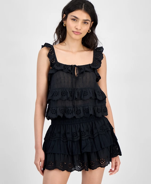 And Now This Women's Cotton Eyelet-Ruffled Tank Top