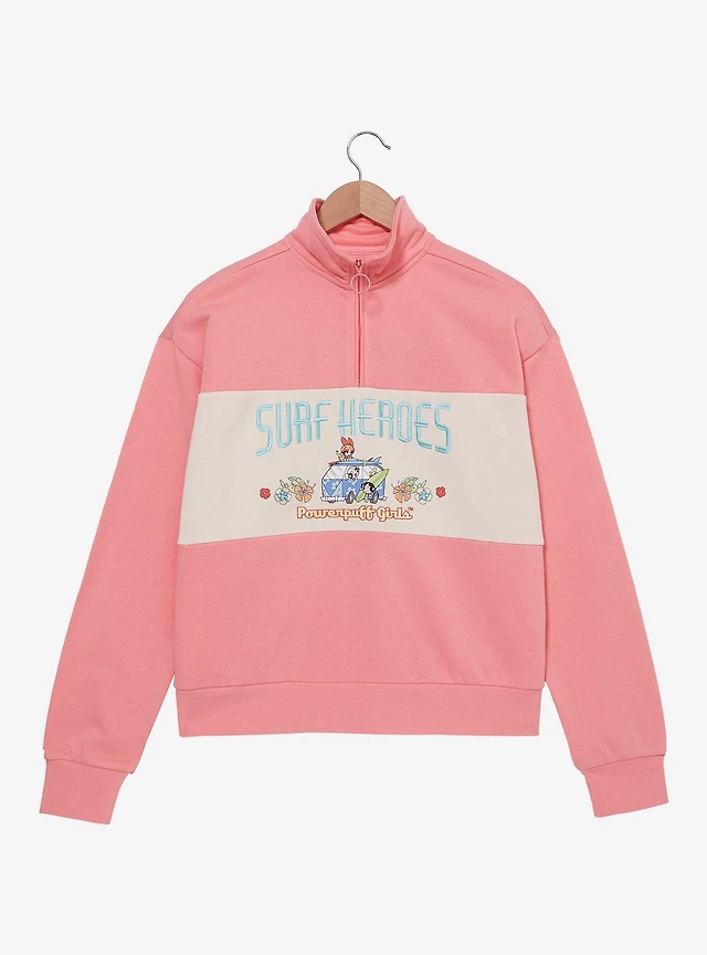 The Powerpuff Girls Surf Heroes Women's Quarter Zip Crewneck - BoxLunch Exclusive