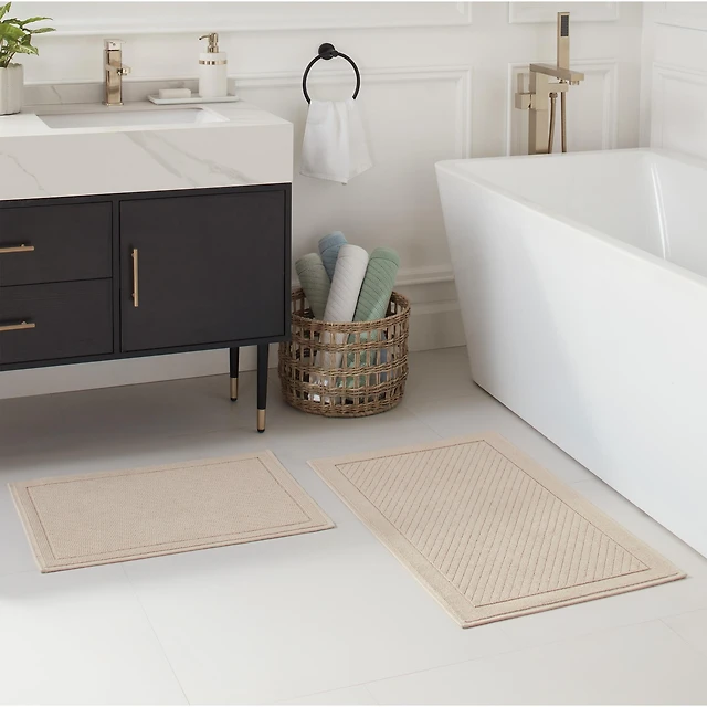 Host & Home Cotton Bath Rug, Stylish Textured Woven Design, Slip Resistant Backing, 5 Color Options, 2-Piece Set - 17x24 20x32