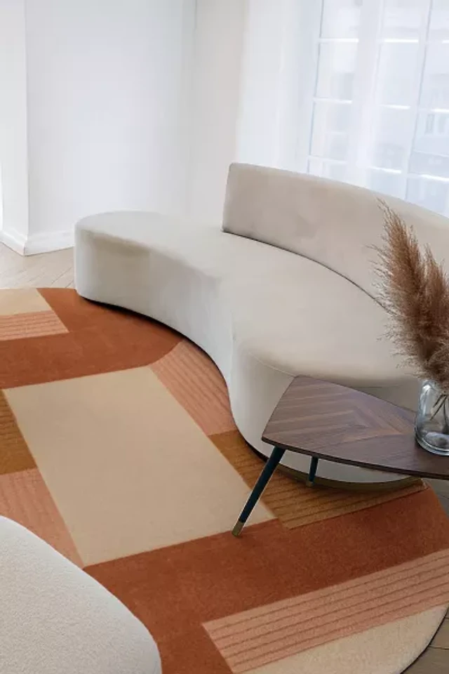 Jubi Neutral Mosaic Oval Hand Tufted Wool Rug