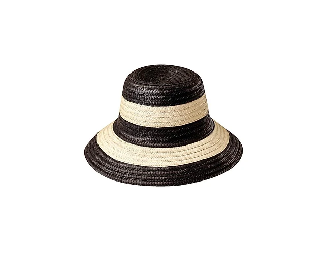 Brunna.co Nona Striped Bucket Palm Straw Hat Black and Natural
