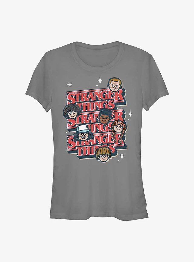 Stranger Things Toon Character Text Stack Girls T-Shirt