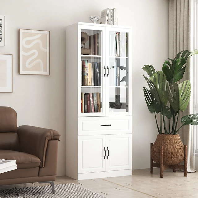 Famapy 8-Shelf White Wood Standard Bookcase with Shelves,Drawers