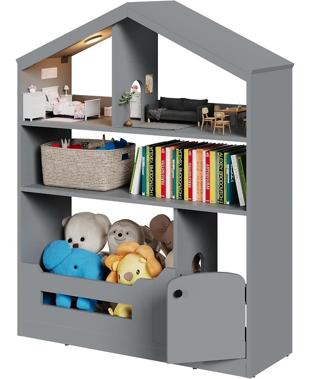 gaomon Kids Bookshelf and Toy Storage, Wooden Kids Bookcase with Motion Sensor Light, Dollhouse Bookcase for Playroom Bedroom Nursery Classroom