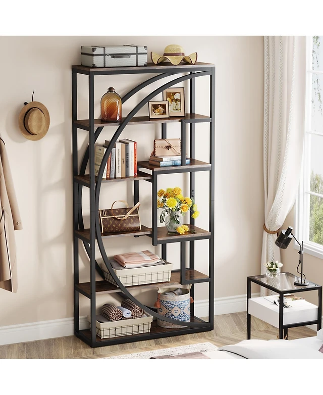 Tribesigns 6-Shelf Industrial Bookshelf, Vintage Etagere Bookcase, 69 Inch Tall Storage Display Staggered Shelves for Home Office