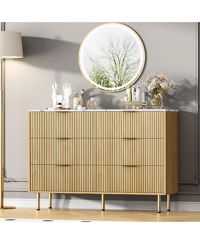 gaomon Fluted 9 Drawer Dresser Curved Profile Gold Handles