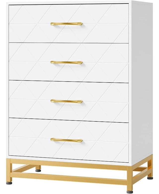 gaomon 4-Drawer White Dresser, Large Modern Bedroom Chest with Gold Metal Handles, Storage for Hallway, Entryway