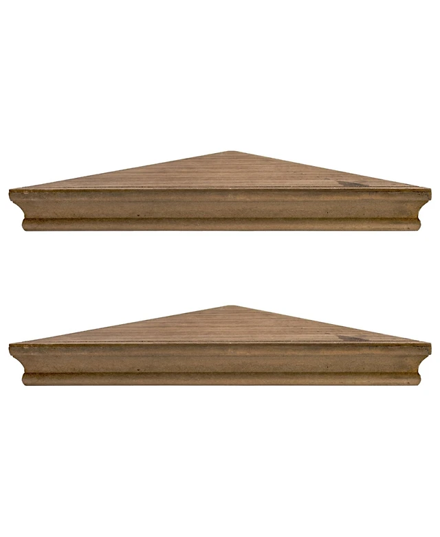 Danya B. Large Rustic Weathered Oak Laminate Corner Wall Mount Shelf