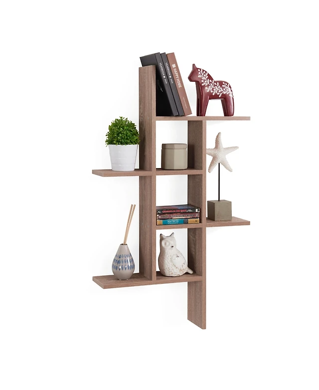 Danya B Modern 3 Cube Floating Wall Shelf with Display Ledge, Easy to Hang Wall Mounted Triple Cubby Shelf