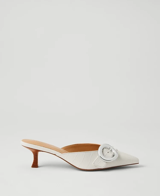 Ann Taylor Buckle Nip Toe Embossed Kitten Heels White Women's