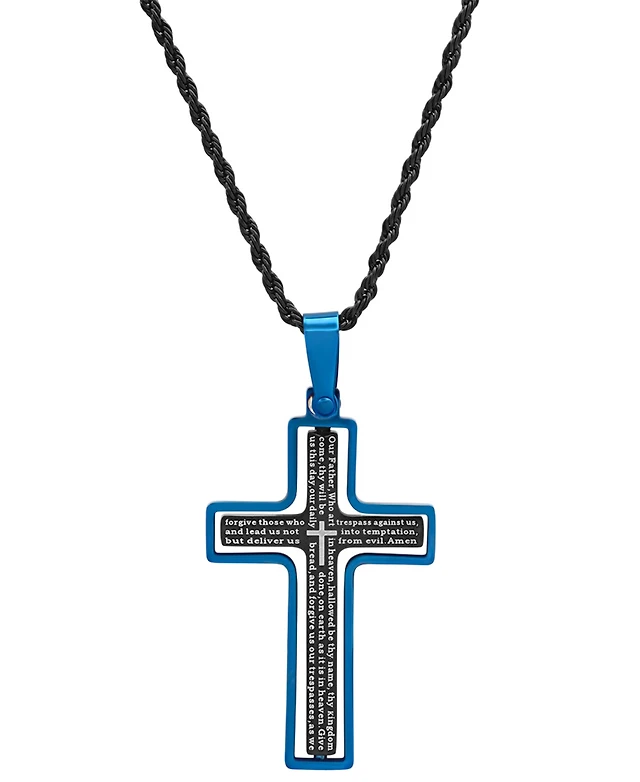 Steeltime Men's Two-Tone Stainless Steel "Our Father" English Prayer Spinner Cross 24" Pendant Necklace