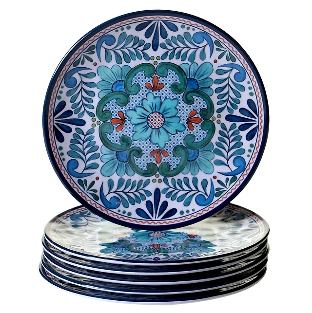 Q Squared Talavera Azul Collection Melamine 8" Salad Plate, Set of 4