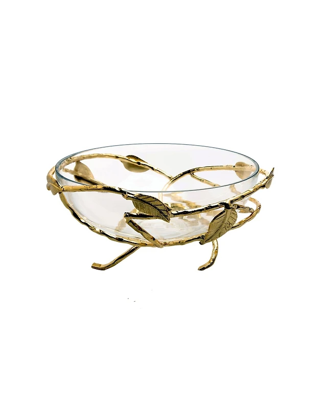 Classic Touch Hammered Glasses Salad Bowl with Gold-Tone Brass Leaf Decoration