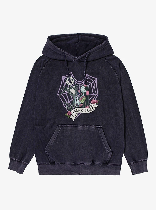Disney Nightmare Before Christmas Jack And Sally Web Heart Mineral Wash Hoodie