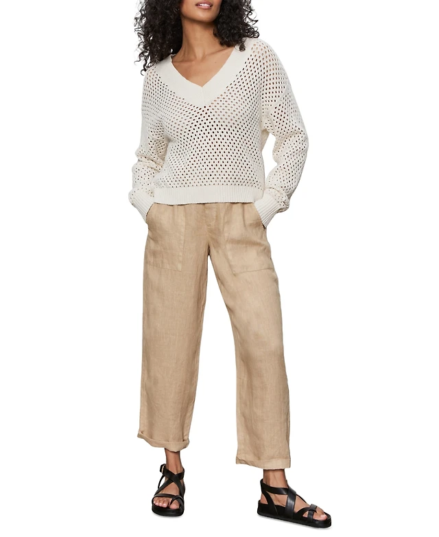 Sanctuary Women's Airy Openwork Cotton V-Neck Sweater