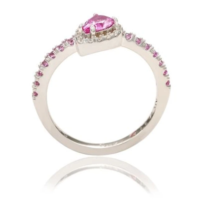 Lab-Created Ruby and White Lab-Created Sapphire Heartbeat Bypass Split Shank Ring in Sterling Silver
