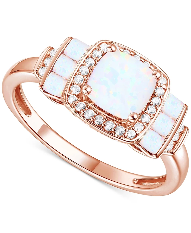 Lab-Grown Opal (7/8 ct. t.w.) & White Sapphire (5/8 Halo Ring 14k Rose Gold-Plated Sterling Silver (Also Ruby La