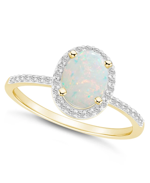 Oval-Cut Lab-Created Opal & White Lab-Created Sapphire Ring Sterling Silver