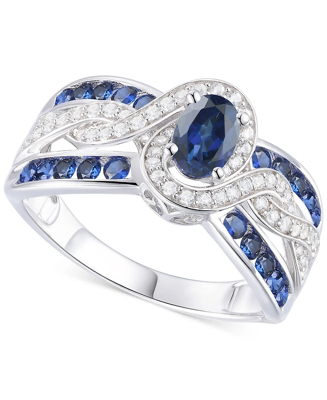 Lab-Grown Emerald (1-1/2 ct. t.w.) and White Sapphire (1/2 Ring Sterling Silver