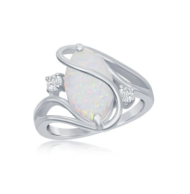 Swiss Blue Topaz/Lab-Created Opal/White Lab-Created Sapphire Ring Sterling Silver