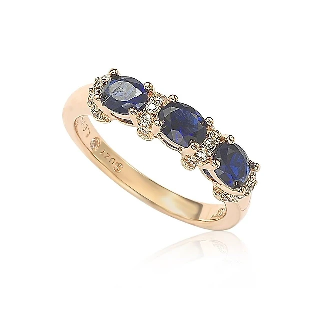 Suzy Levian New York Sterling Silver Sapphire & Created White Half Band