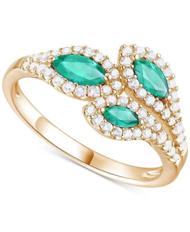 Lab-Grown Emerald (3/8 ct. t.w.) & White Sapphire (1/4 Band 14k Gold-Plated Sterling Silver (Also Blue