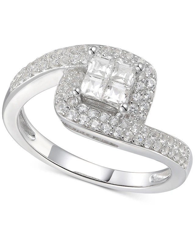 Suzy Levian Sterling Silver Sapphire & Created White 9 Stone Curvy Frame Ring