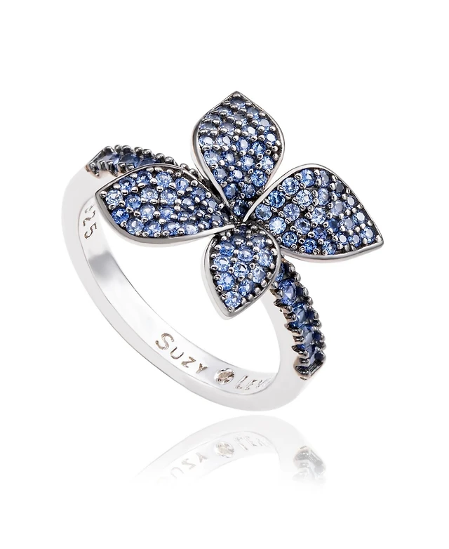 Suzy Levian Sterling Silver Sapphire Crossing Ring