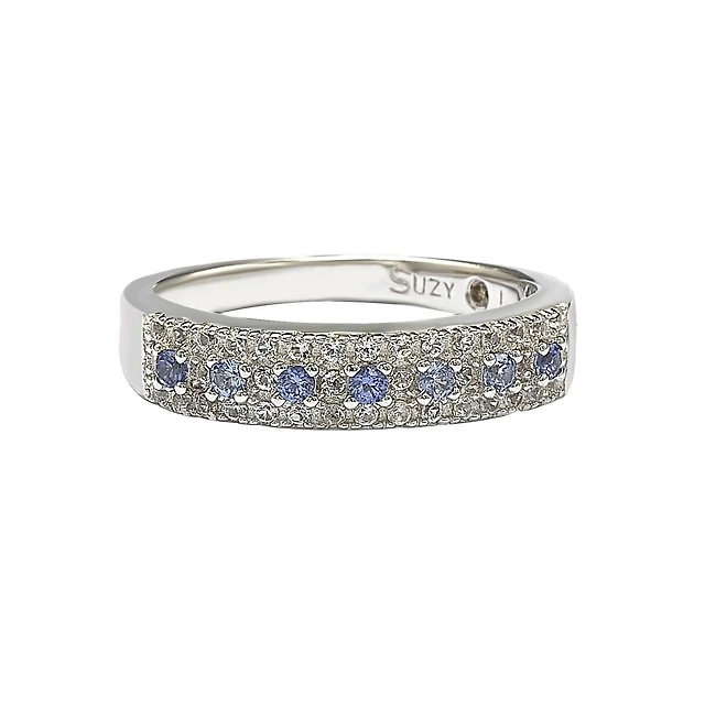 Suzy Levian Sterling Silver Sapphire & Created White Color-Pop Half Band Ring