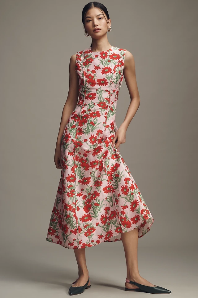 Alex Evenings Women's Printed Midi Yoryu Sleeveless Dress