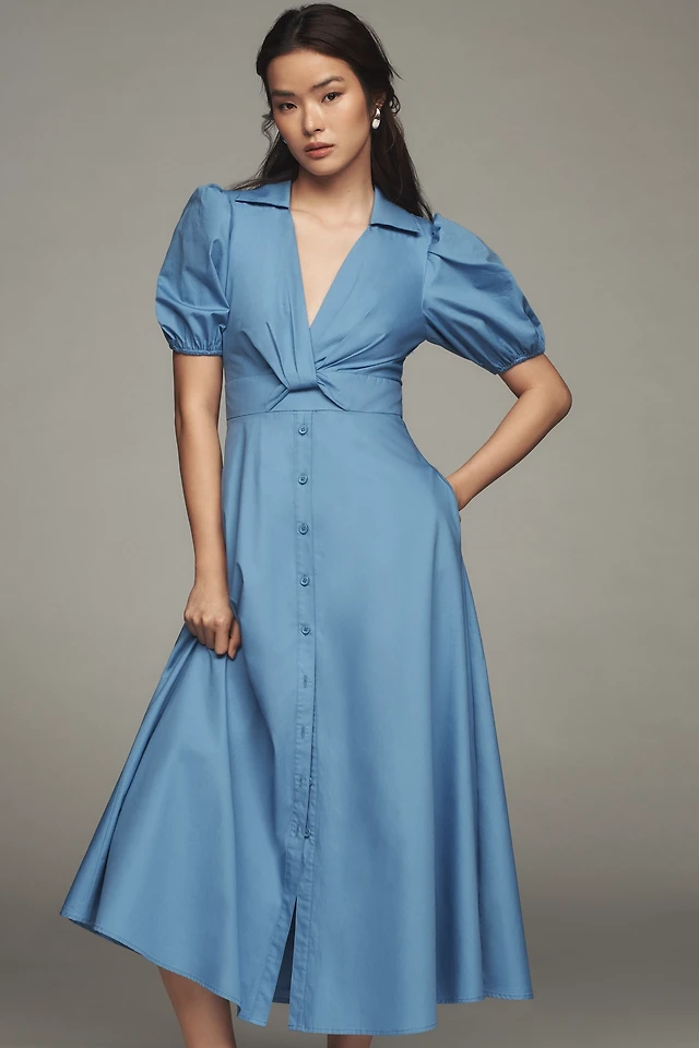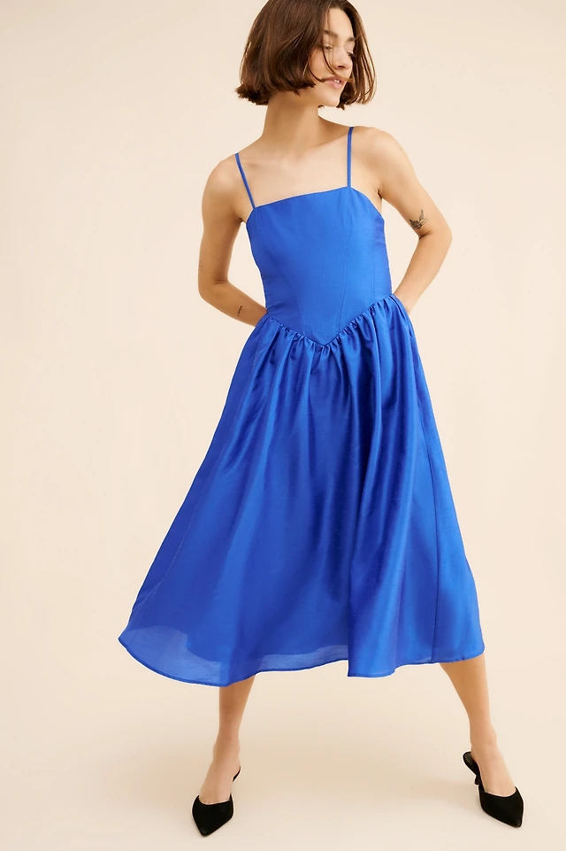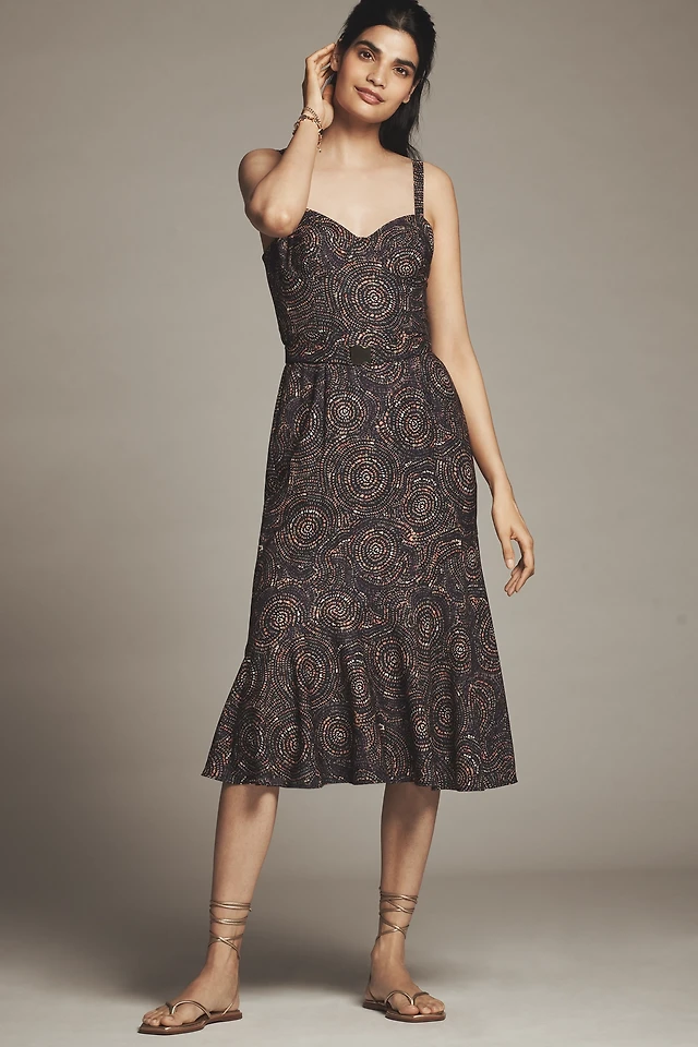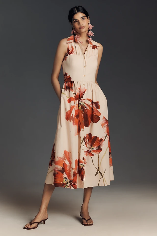 Maeve Sleeveless Ruched Babydoll Midi Dress