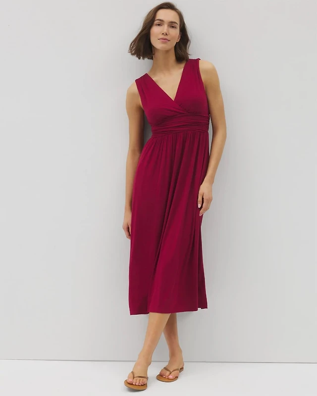 Ann Taylor Linen Blend Puff Sleeve Midi Dress Pink Orchid Women's