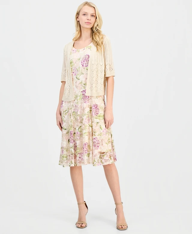 Style & Co Women's Printed Quilted 3/4-Sleeve Dress, Macy's Exclusive