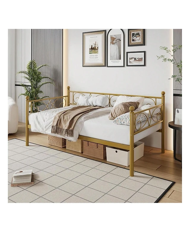 gaomon Twin Daybed with Trundle Metal Sofa Bed Heavy Duty Slats Space Saving Guest Room Gold