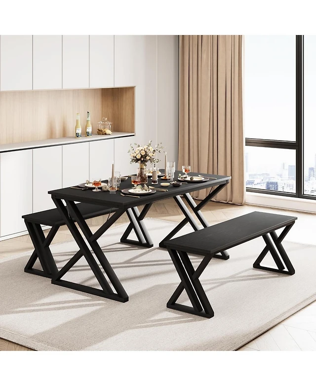 gaomon 3 Piece Dining Table Set for 4 with Space-Saving Benches, Tabletop, Steel Frame, Modern Farmhouse Kitchen Table for Small Spaces