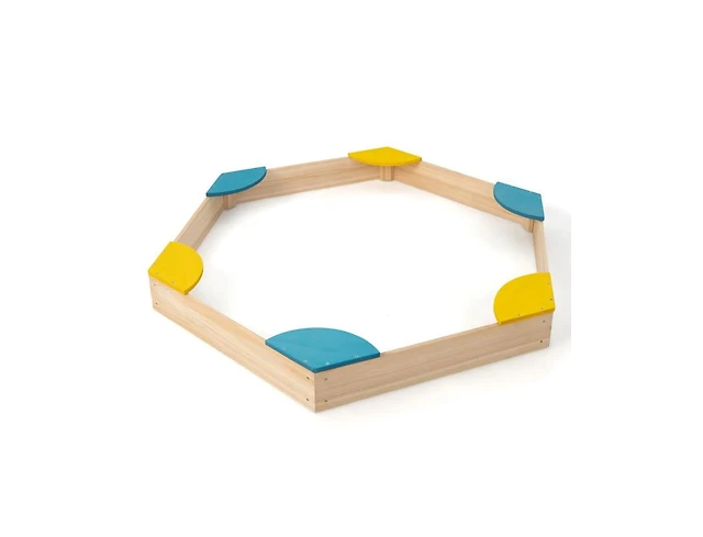 Outdoor Solid Wood Sandbox with 6 Built-in Fan-shaped Seats