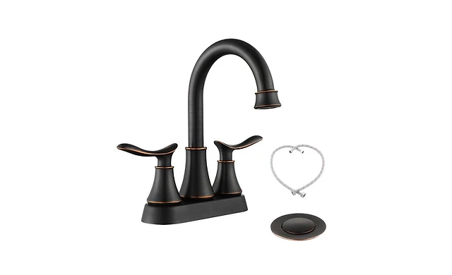 Slickblue 2-Handle 4-Inch Oil Rubbed Bronze Bathroom Faucet for Vanity Sinks, Complete with Pop-Up Drain and Supply Hoses