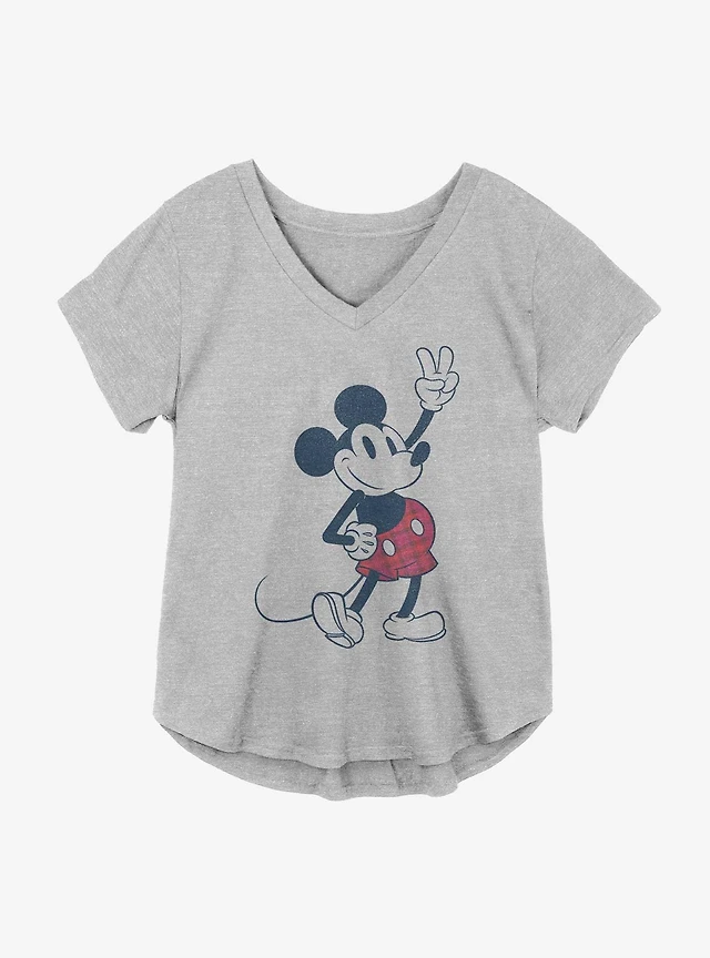 Disney Mickey Mouse Plaid Old School Girls Plus Size T-Shirt