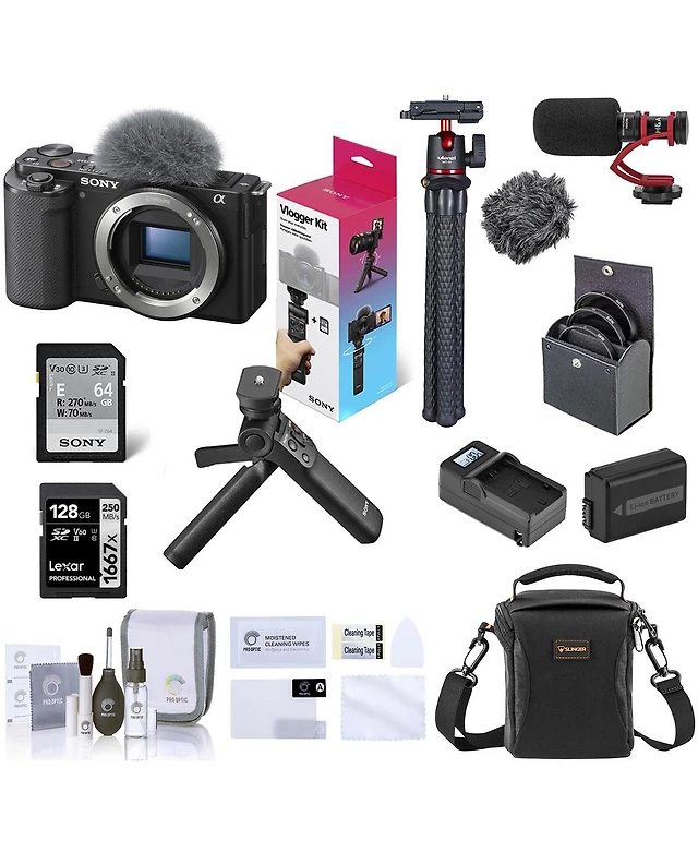 Sony Sony Zv-E10 Mirrorless Camera with 16-50mm Lens, Bundle,128GB Memory Card, Backpack, 2x Battery Packs, Dual Charger, Tripod, Microphone, Screen