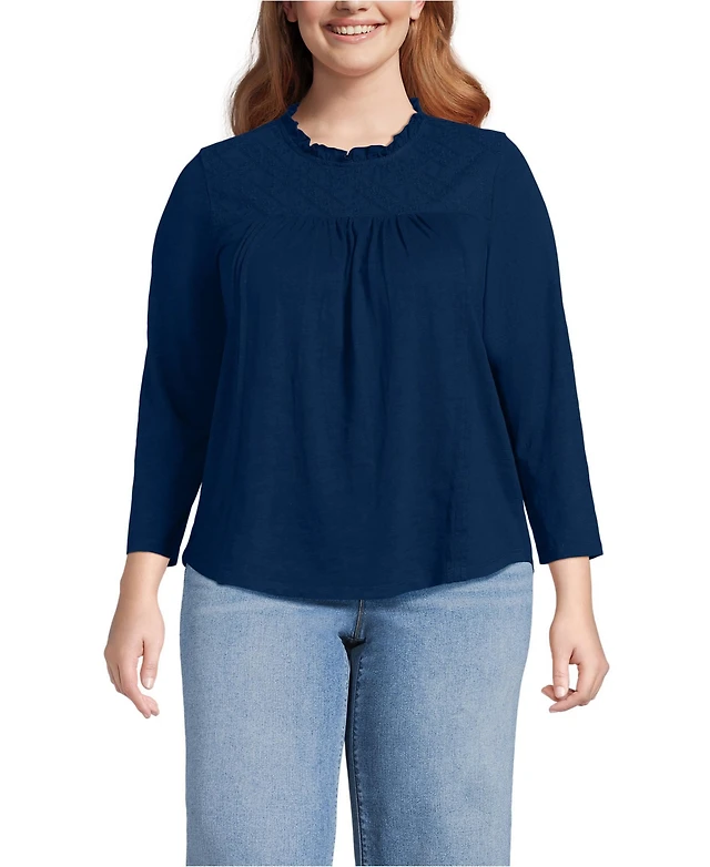 Lands' End Women's Boxy Cropped No Iron Pintuck Shirt
