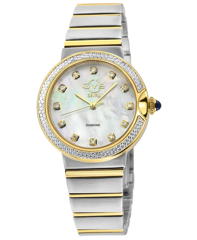 GV2 by Gevril Women's Sorrento Swiss Quartz Diamond Accents Two-Toned Ss Ipyg Stainless Steel Bracelet Watch 32mm