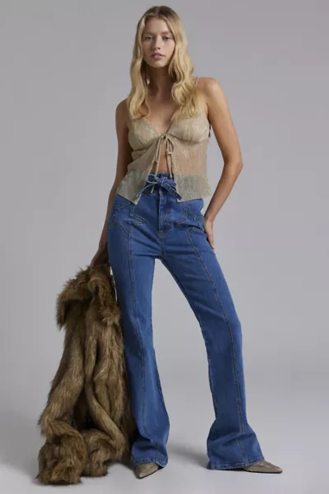 Playboy By PacSun Stretch Frayed High Waisted Flare Jeans