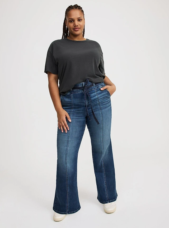 Lands' End Women's Petite Soft Denim High Rise Wide Leg Braided Jeans
