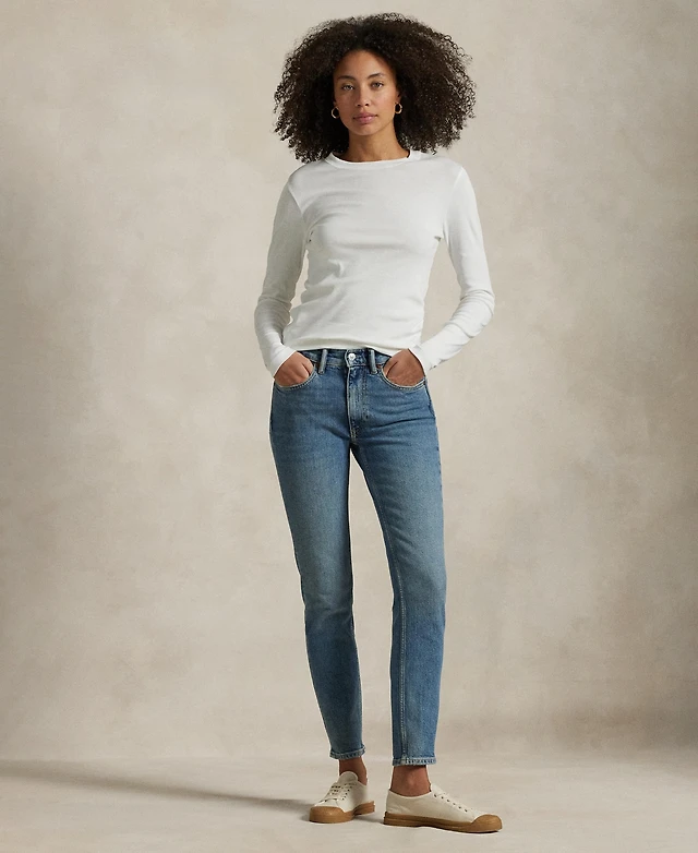 Mid Rise UltraSoft Denim Stripe Easy Horseshoe Jeans