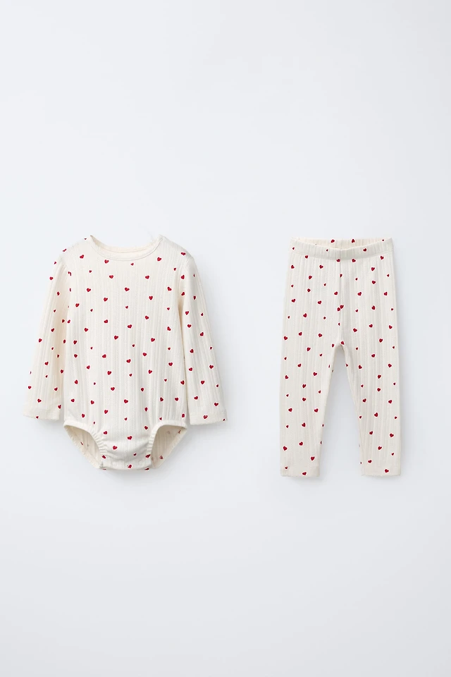 HEART PRINT BODYSUIT AND LEGGINGS SET