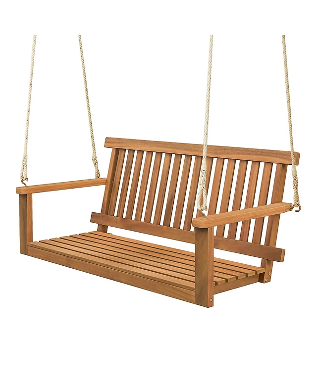 Costway Patio 4pcs Acacia Wood Conversation Table & Chair Set Hand-Woven Rope Outdoor