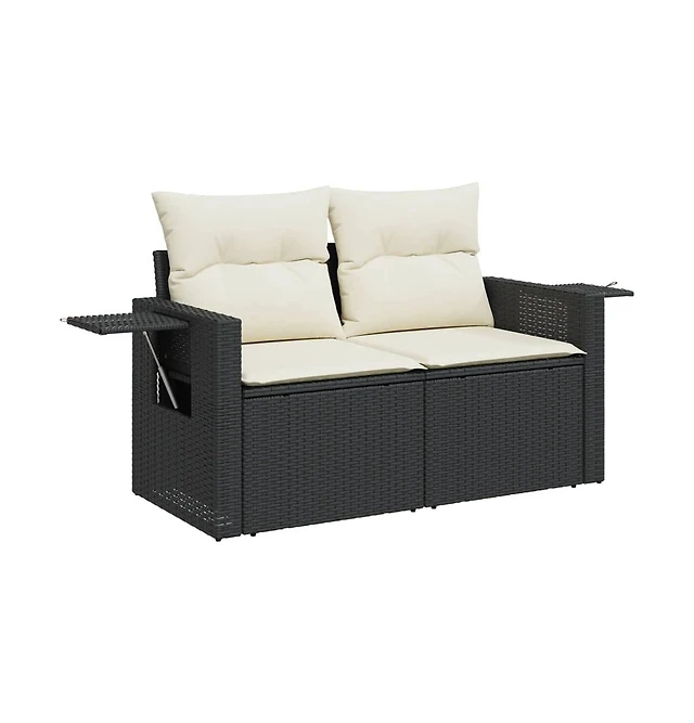 Garden Sofa Beige Poly Rattan, Powder-Coated Steel, Polyester