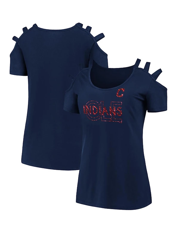 Women's Fanatics Navy Cleveland Guardians Three Strap Open Shoulder T-shirt