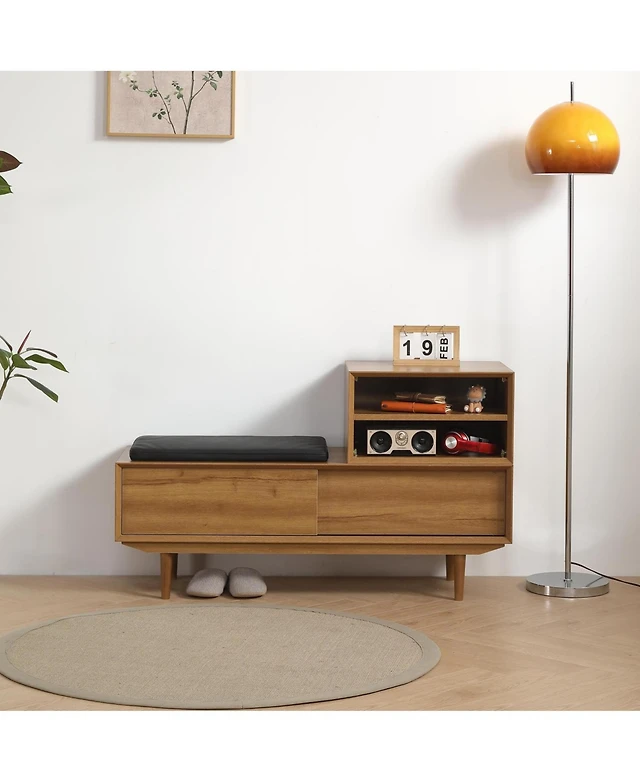 Songmics Home Modern Entryway Bench with cushion and Shoe Storage, Ideal for Living Room, Bedroom, Hallway, Dark Grey & Ink Black