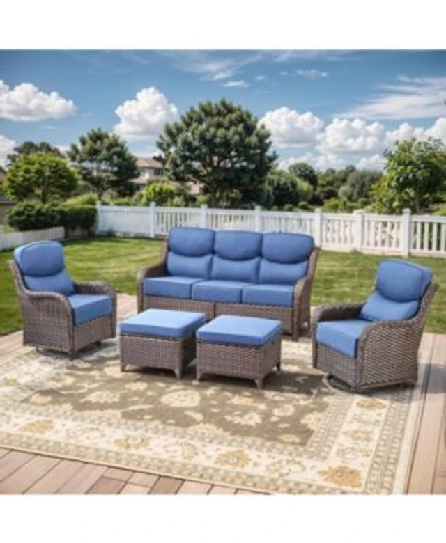 Xizzi 6-Priece Outdoor Patio Set with All-Weather Polyester Rope, Conversation Sofa for Backyard Deck Soft Cushions,Ottomans and Glass Coffee